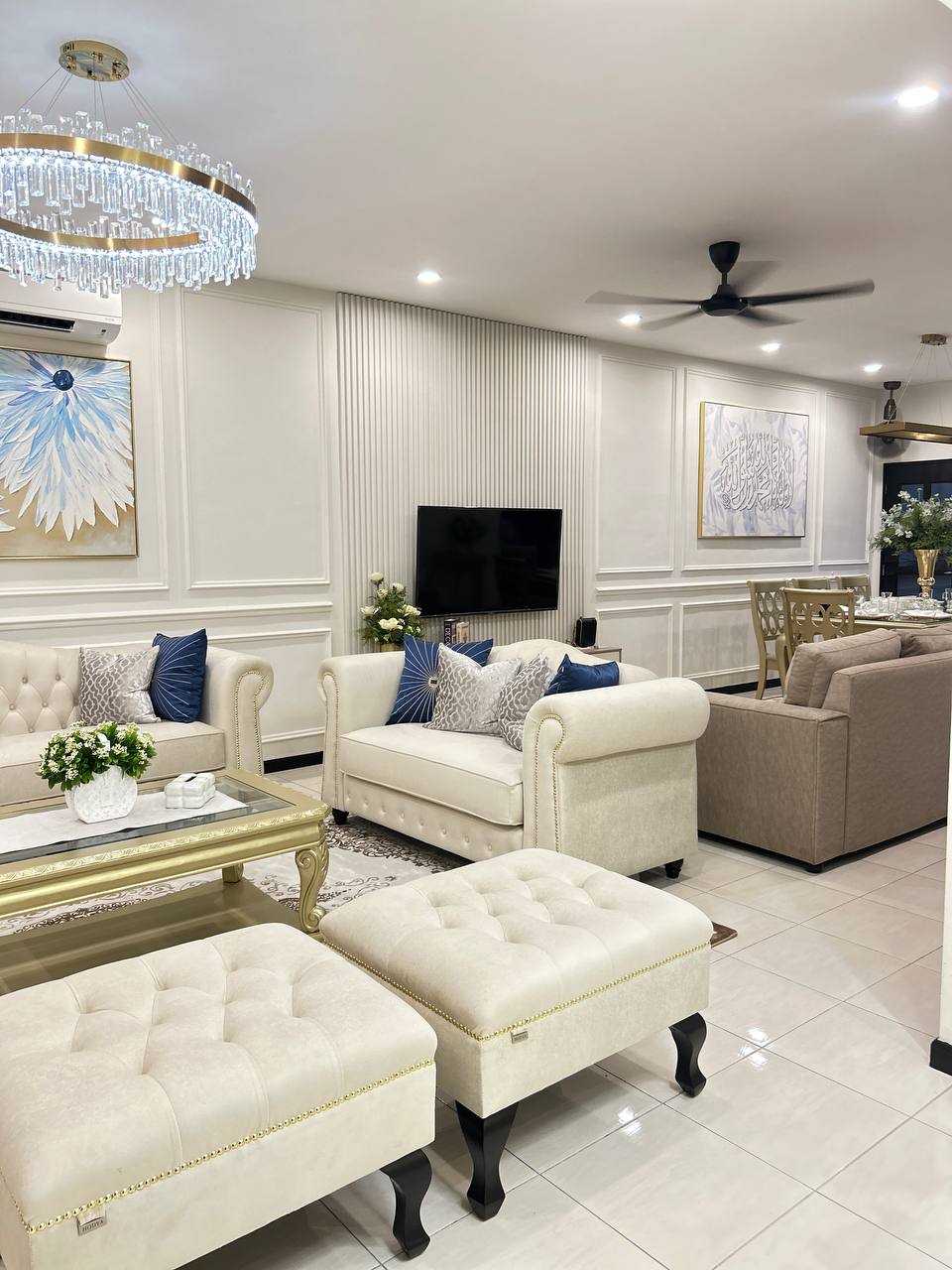 JOB DECO RAYA PN MIMI SENAWANG, JOB SKOP LIVING & DINING AREA REFURBISH SOFA & DINING SET CURTAIN WHOLE HOUSE AIRCON 4 units NEW FURNITURE & ACCESSORIES TOILET FLUTTED HIDDEN DOOR WALL PANEL & WALLPAPER