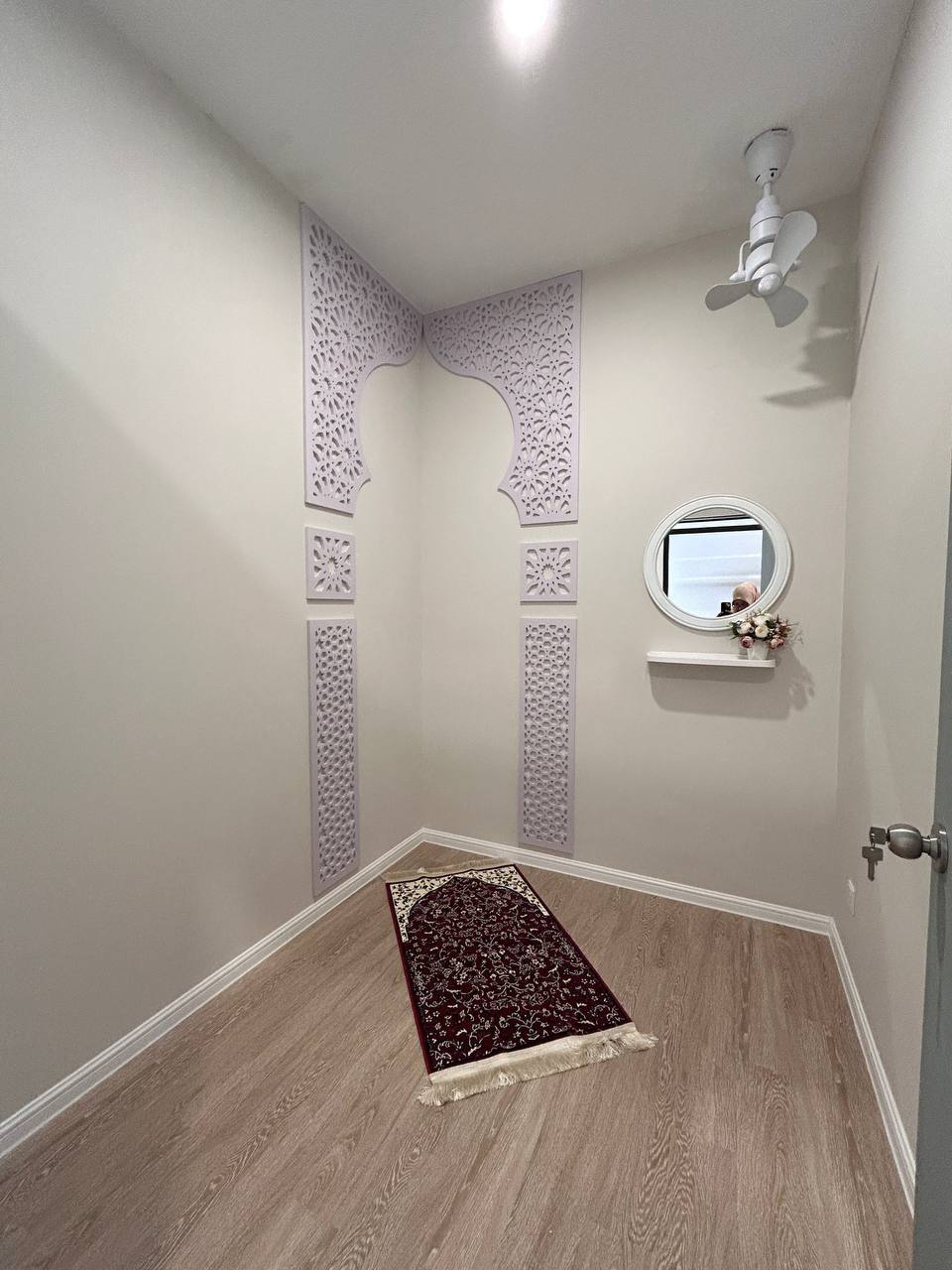 JOB DECO AMPANG, MAIN BEDROOM, JOB SKOP RUANG MIHRAB, WARDROBE + DRESSING TABLE, HEADBOARD PANEL, CURTAIN, ACCESSORIES
