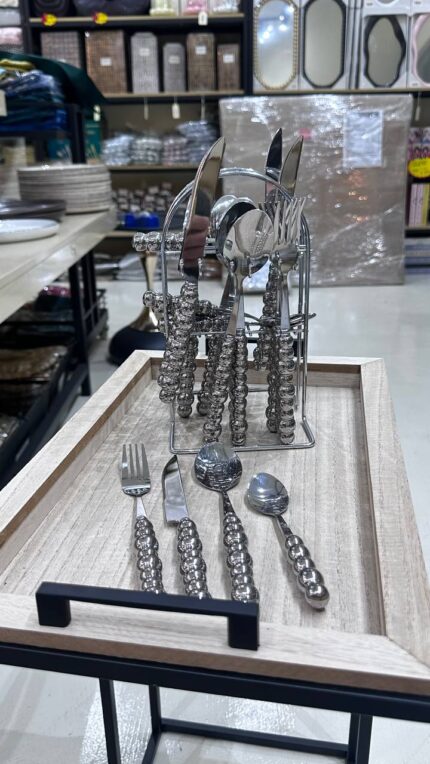 Luxury Beaded Stainless Steel Cutlery Set (with Stand) Elevate your dining experience with this stunning cutlery set designed to blend