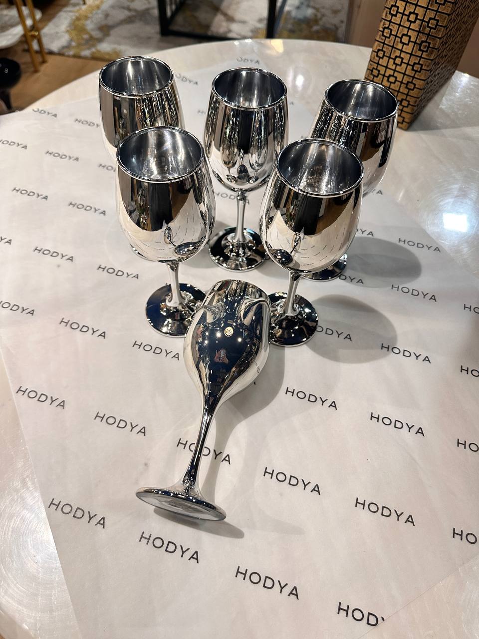 With its mirror-like metallic finish and classic stemmed silhouette, each piece reflects light beautifully, creating a sophisticated and elevated dining atmosphere.